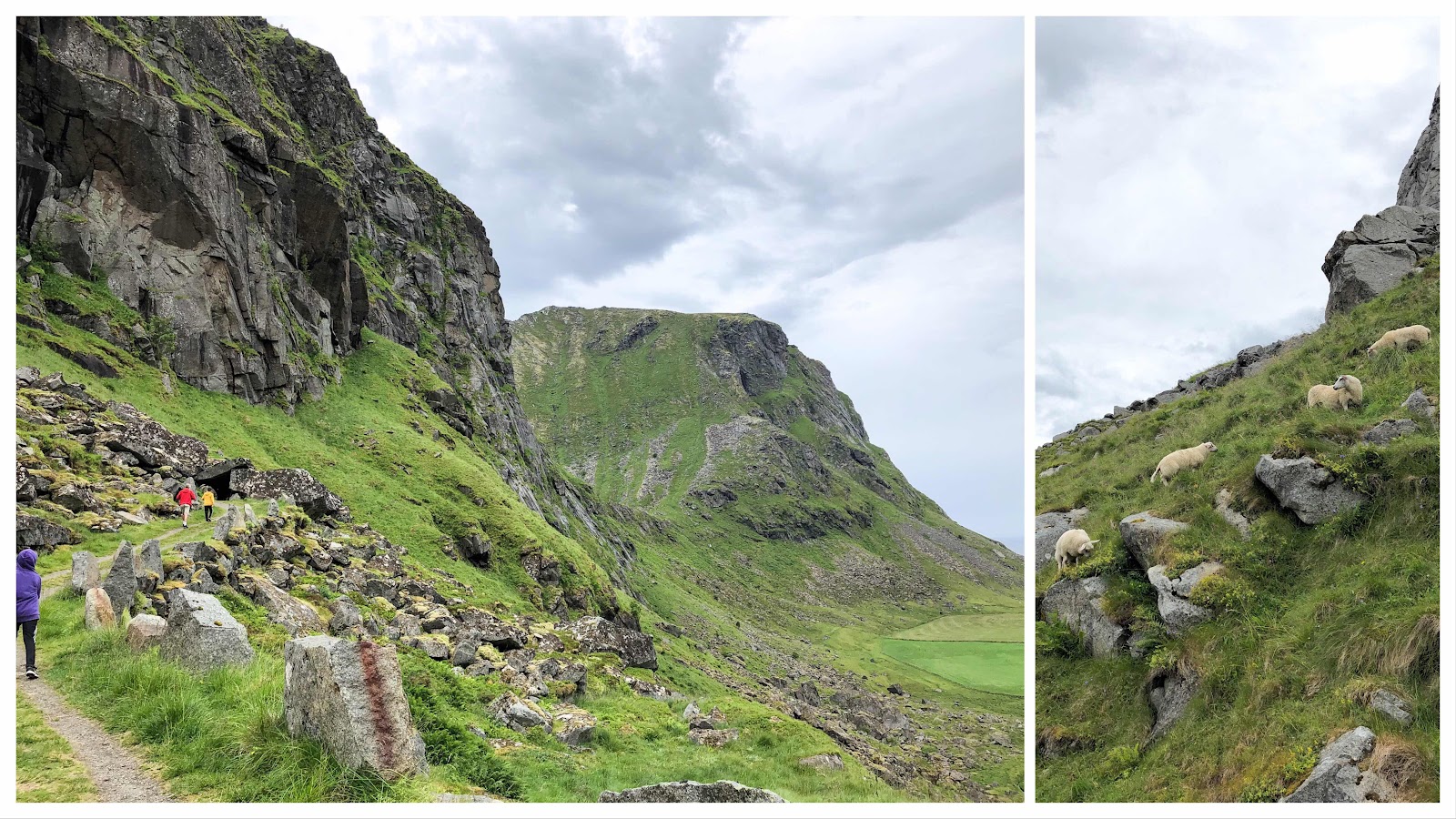 På morgonen regnade det och hela dagen var molnig. Här regnar det ofta, vilket förståss är en av orsakerna till att gräset ser insta-retugerat grönt ut. Efter att vi igen tömt och fyllt bilen med det obligatoriska, åkte vi med min kompis och hennes pojke till Henningsvaer, där det finns en unik fotbollsplan - och så pojkarna njöt. Dom spelade och vi kollade vyerna i fiskebyn.